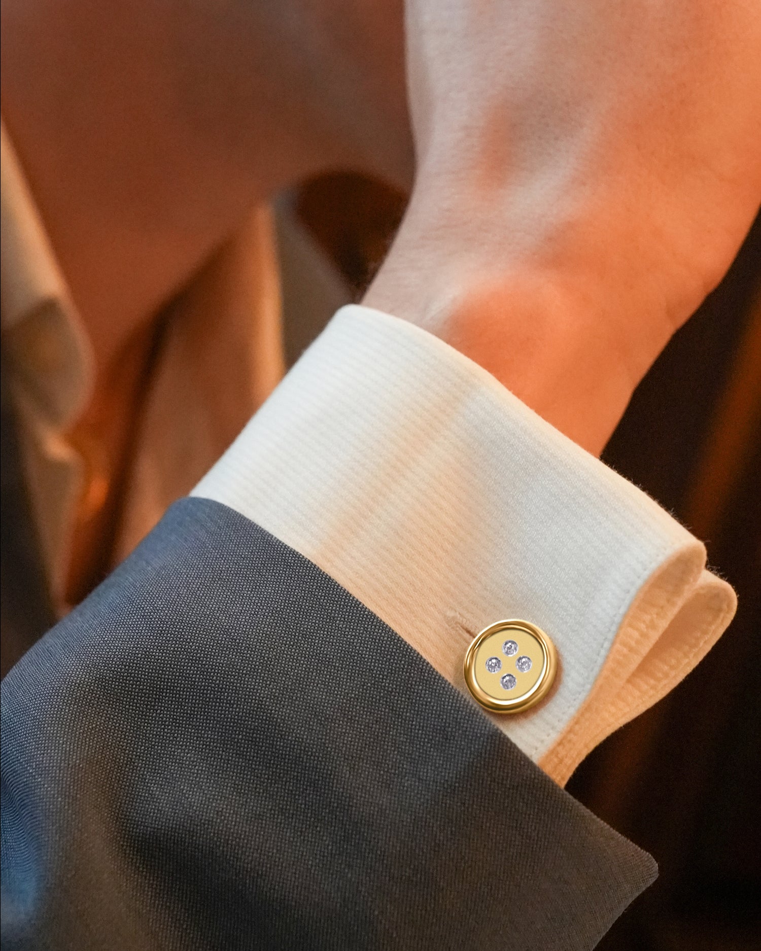Our signature Buttons, made in 18K gold, connected with traditional chain link. Handcrafted in NYC. Designed to be worn for years to come.