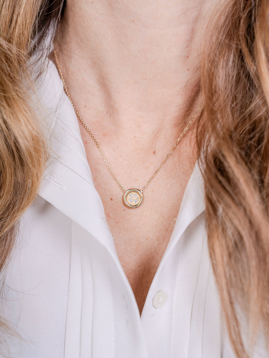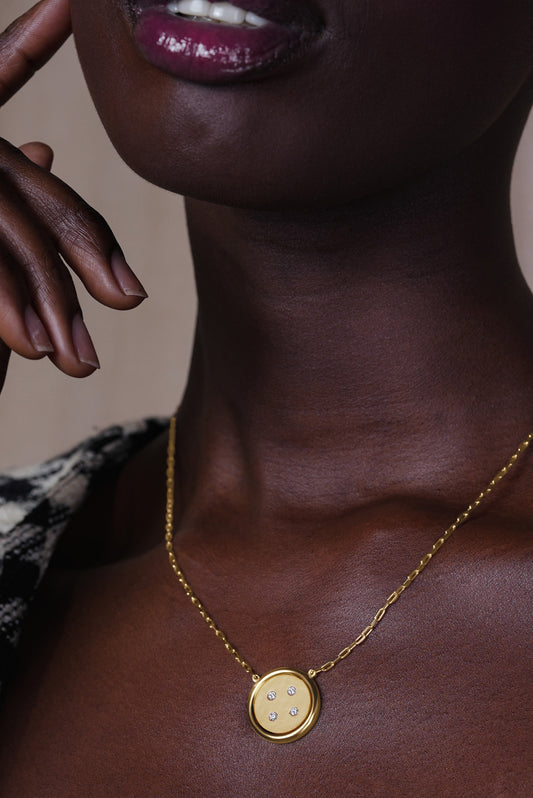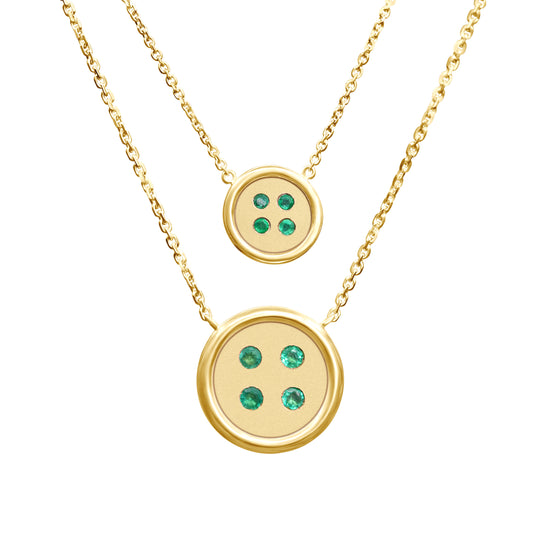 Small Yellow Gold Button Necklace With Diamond, Emerald, Sapphire, and Amethyst